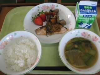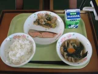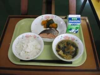 今日は第1弾。6年1組Mさんが作成した献立です。考えた理由は「この時期は風邪がはやる時期なので野菜をたくさん使った献立にしました。少しでも野菜をとってもらうために主菜の鮭にもねぎソースをかけました。また、使っている野菜も冬が旬のものを多く使いました。ただ、野菜ばかりでも栄養バランスが崩れるので、みそ汁に油揚げを入れてみました。」とのことです。Mさんの思いのつまった給食をおいしくいただきましょう。
