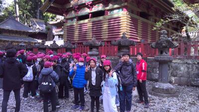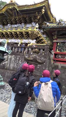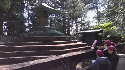 2日目の午前中は、竜頭の滝を見学後、日光東照宮をグループで見学しています。事前に調べたことをグループ内で発表しながら、見学しています。