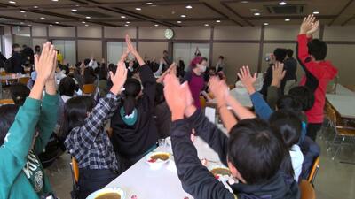 スピードを変えたり、1つの単語を言わないバージョンで歌ったりと…ゲーム感覚の楽しさもあり、体育館中楽しい空気があふれていました。気持ちのいい青空で始まった朝、たまみやっ子たちの歌声でとってもすてきな1日がスタートしました😊