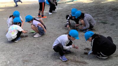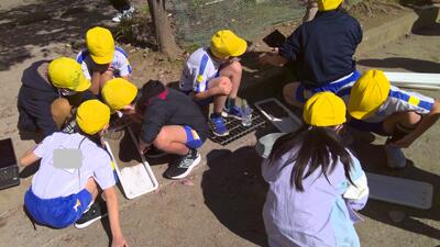 今日も秋晴れに恵まれ、校庭には子どもたちの声が響いています。体育や理科の学習で、同じ時間に複数の学年が学んでいました。