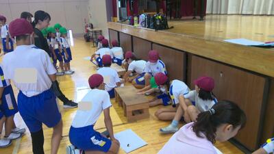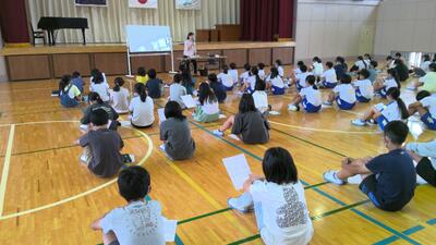 運動会が終わり、今週は新体力テストに向けての計測が始まりました。その中でもシャトルランは、低学年の活動を高学年の児童がサポートする形で行います。今日は、2年生と5年生のペア学年による活動が行われていました。優しくサポートしてくれる5年生のおかげで、2年生は自分の力を発揮することができたようです。
