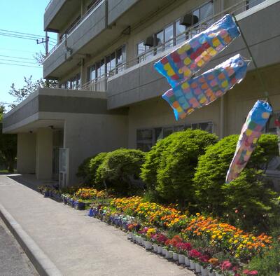 わかば学級のみんなで作ったこいのぼりです。気持ちよさそうに風にたなびいていました