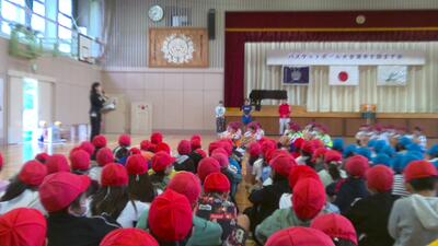 1年生も加わって初めての全校朝会。1カ月の中で、たくさんの「たまみやっ子」のよいところをたくさん見つけました。