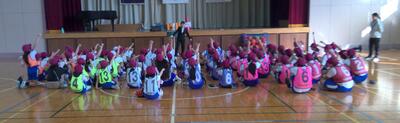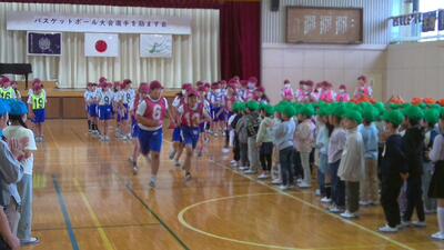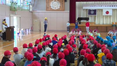 今朝は、全校集会「バスケットボール選手を励ます会」を行いました。1~5年生の応援を受け、さらに「がんばろう」という気持ちがわいてきた様子が、6年生の瞳からとても感じました
