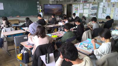5年生は「あったらいい町どんな町」という題材で、思い思いのテーマをもとに絵を描いていました。黙々と自分の作品と向き合いながら描いている様子が、とてもすてきでした。仕上がりが楽しみですね。