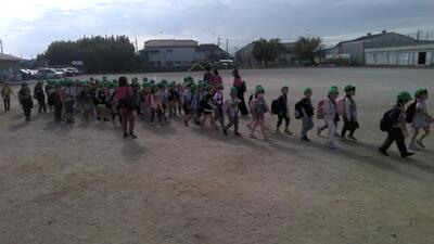 さおわやかな秋空の下、1年生が多くの上級生や先生方に見送られる中、校外学習に出発しました。入学して初めてのバスでのお出かけイベントです。とっても楽しみにしていましたね。1日、みんなで仲良く、楽しく活動できますように✨