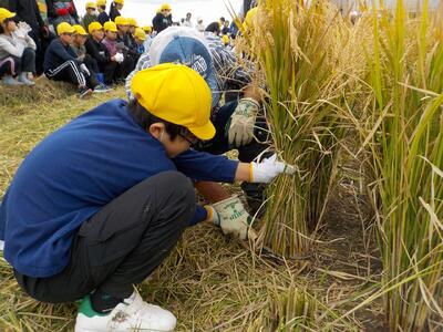 3か月前の田植え体験に続き、今日は地域の皆さんのお力添えをいただきながら、稲刈り体験を行うことができました。鎌を使っての稲刈りです。子どもたちは鎌の扱いに苦戦しながらも、一生懸命がんばって大切な稲を刈り取ることができました。このような貴重な体験ができるのも、今日を含め、これまでずっとご支援いただいた地域の皆さんのおかげです。本当にありがとうございました😊