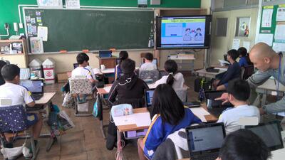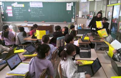 4年教室では、冬の星座の学習を、そして3年教室では来年度の埼玉県学力状況調査に向けてのCBT体験(パソコン上で問題に解答する)を行っていました。