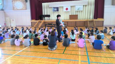 1年生が体育館に集まって、外部講師をお招きし、鍵盤ハーモニカ講習会を行いました。冒頭のアニメのテーマソングの演奏に聴き入る1年生でした。講習会では、これからの音楽の学習に生かせる内容について、しっかり学習することができました🎹