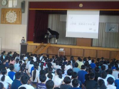 その後、4年生、5年生の代表児童の2学期に向けての言葉、生徒指導主任より、8・9月の生活目標についての話がありました。
