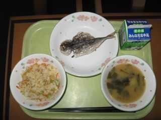 アジは海の魚で、マアジ、ムロアジ、シマアジなど50種類以上います。春から夏に北へ、秋から冬には南へ回遊します。春から秋にかけておいしい魚です。からだにのこぎりの歯のような鋭い「ぜいご」と呼ばれるうろこを持ちます。アジは海の魚の中で最もカルシウムを多く含んでいる魚のひとつです。カルシウムは骨や歯を丈夫にしてくれます。また、アジには脳の働きをよくしてくれるDHAやEPAも多く含まれています。魚好きは頭がよくなるかもしれません。今日はアジを頭から尻尾まで丸ごと揚げています。よーくかんで骨や歯、頭に栄養を与えてください。