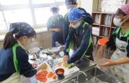 「ヤンニョムチキン」は給食に初登場です。酒、塩、こしょうで鶏肉に下味をつけ、片栗粉と米粉を合わせたものをまぶし、油で揚げます。ケチャップ6:コチュジャン0.5:はちみつ3:ごま油2:しょうゆ0.3:すりおろしたにんにく0.2:水3~5の割合でタレを煮立て、丁度よいトロミのところまで加熱します。揚げた鶏肉にタレをからめてできあがりです。ご家庭で作る場合は、お好みでいりごまをまぶしたり、コチュジャンの分量で辛味を調整したりしてください。