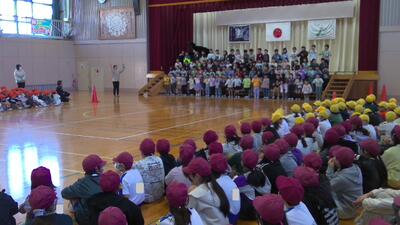 スピードを変えたり、1つの単語を言わないバージョンで歌ったりと…ゲーム感覚の楽しさもあり、体育館中楽しい空気があふれていました。気持ちのいい青空で始まった朝、たまみやっ子たちの歌声でとってもすてきな1日がスタートしました😊