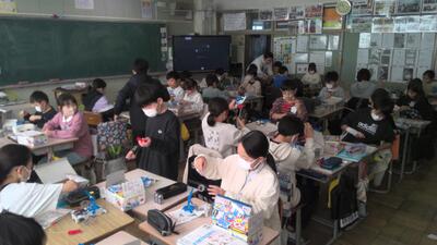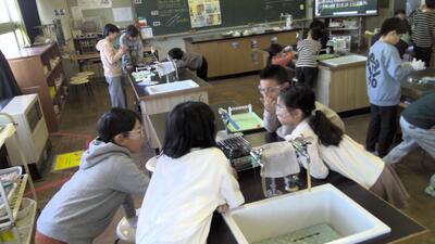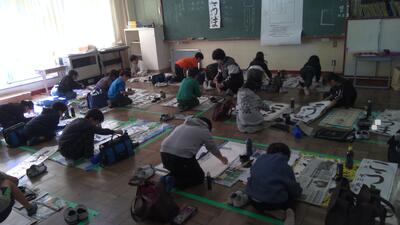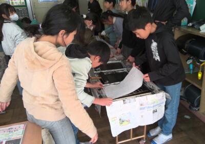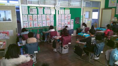 学期末の教室では、テストをしていたり、書きぞめをしていたりと…今日も様々な学習に取り組んでいます。その中で、版画の学習や理科の実験では、友だちと協力し合いながら活動していました。