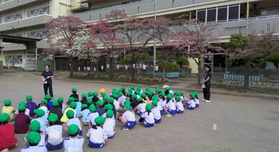 春の暖かさに包まれ、過ごしやすい日々が続いています。校庭のハナミズキのピンクや白が目に鮮やかです。今日は、業前に学年ごとの朝会が行われました。写真は、2年生。今月の目標は、「元気にあいさつ、返事をしよう」です。先生から「挨拶は、心と心の握手です。人と人がよい関係をつくるには大切なこと。進んで元気にあいさつをしましょう。」というお話がありました。朝のあいさつも、自分からできる人が増えるといいですね。おうちでも、ぜひ、さわやかなあいさつができるように声がけをお願いします。